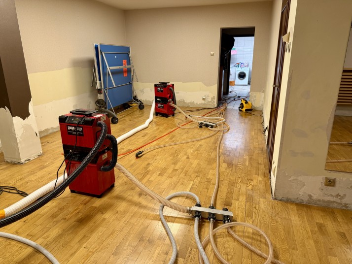 - Diagnoza i pomiary wilgotności: Pracę rozpoczynamy od precyzyjnych pomiarów, aby zlokalizować zasięg zalania pod posadzką i dobrać odpowiednią metodę działania.,
